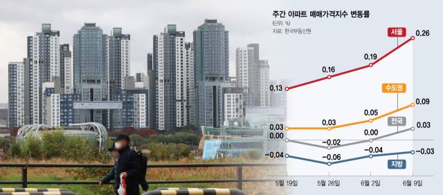 최근 급등세가 대출 규제 강화 영향으로 해석되는 만큼 정부와 서울시가 당장 토허구역 확대 지정 카드를 꺼내지는 않을 것이라는 전망도 나온다. 김은선 직방 빅데이터랩장은 “3단계 스트레스 DSR 시행 전 막차 수요가 끝나면 7월부터는 매수세가 약해질 수 있기 때문에 당장 토허구역 확대로 이어지기는 힘들 것”이라며 “공급 부족을 우려한 매수 행렬이 정부 정책에 따른 청약 수요로 얼마나 옮겨갈지가 하반기 흐름을 결정할 것”이라고 내다봤다.