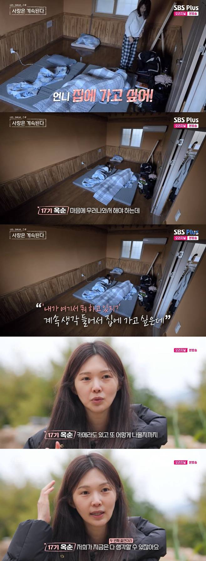 12일 방송된 SBS Plus와 ENA의 '나는 SOLO, 그 후 사랑은 계속된다'(이하 '나솔사계')에서는 '솔로민박' 둘째 날 하염없이 눈물을 흘리는 17기 옥순의 충격적인 속마음이 공개됐다.