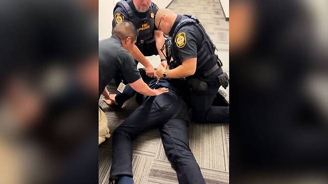 국토안보부 직원들은 상원의원을 밖으로 붙잡아 나가서는 바닥에 쓰러트리고, 수갑을 채웠습니다.