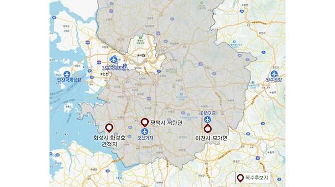 경기도는 지난해 '경기국제공항 건설을 위한 비전 및 추진방안 수립 연구' 용역을 통해 화성시 화성호간척지, 평택시 서탄면, 이천시 모가면 등 3곳을 국제공항 후보지로 선정한 뒤 후보지 분석 및 배후지 개발전략 수립 용역을 추진하고 있습니다.
