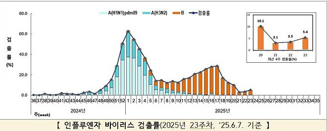 | ▲ 인플루엔자 바이러스 검출률(2025년 23주차, ‘25.6.7. 기준 |