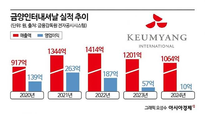 와인 수입사들도 실적 부진을 면치 못하고 있는데, 신세계L&B, 아영FBC, 나라셀라와 함께 국내 '빅4' 와인 수입사 중 하나로 꼽히는 금양인터내셔날도 예외는 아니다. 2022년 1414억원까지 늘었던 매출은 지난해 1064억원으로, 187억원이던 영업이익도 10억원까지 감소했다.