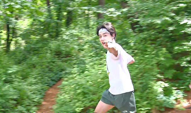또한 숲길이 나오자 그는 더욱 스피드를 내는데, 이와 관련해 그는 "사실 어릴 때 집이 속리산 국립공원 안에 있어서 산에서 많이 뛰어놀아봤다"며 '숲세권' 출신임을 밝힌다. 급기야 그는 산길에서 탄력을 받아 평지에서도 쾌속 질주해, 10분 먼저 출발했던 A그룹 출발자인 차은우를 따라잡는 기염을 토한다.