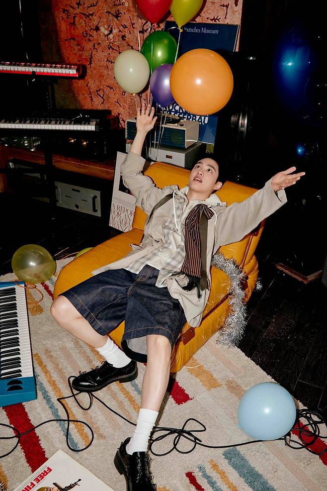 공개된 사진 속 도경수는 자유분방한 에너지를 뿜어내며 시선을 사로잡았다. 만화 ‘검정 고무신’ 캐릭터 기영이를 떠올리게 하는 삐죽빼죽 짧은 헤어도 완벽 소화한 도경수. 그는 파티 분위기 속에서 풍선을 가지고 노는 모습, 포스터가 붙여진 벽과 기타가 놓인 침대에 누워 카메라를 응시하는 모습은 특유의 여유로운 무드를 자아냈다.
