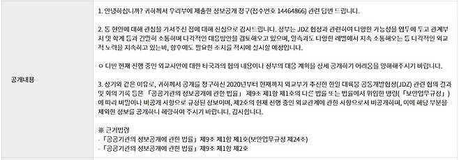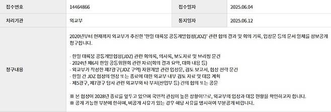 | ▲ 7광구 청보공개청구 외교부 답변(공개)내용 |