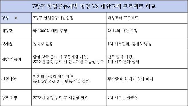 | ▲ 7광구 한일공동개발협정 윤석열 정부에서 추진한 '대왕고래프로젝트'와 박정희 정부시절부터 이어져온 '7광구 한일공동개발협정'을 비교 분석 했다. |