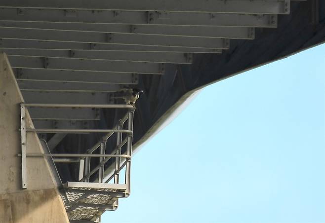 그 모습은 마치, 이곳이 살아 있는 곳인지, 내가 머물 수 있는 곳인지, 살 자리를 찾으러 온 듯한 눈빛이었다. 6월 확인한 송골매는 날갯짓은 당당했고, 시선은 깊었다. 11일과 12일, 이틀 내내 같은 난간에 앉아 조용히 강을 바라보다 떠났다. 앞으로 매일 나타날 지도 모르겠다. 맹금류는 본능적으로 감지한다. 강이 살아 있는지, 먹이사슬이 작동하는지, 숨 쉴 수 있는 기운이 남아 있는지를 알 수 있는 것이다.
