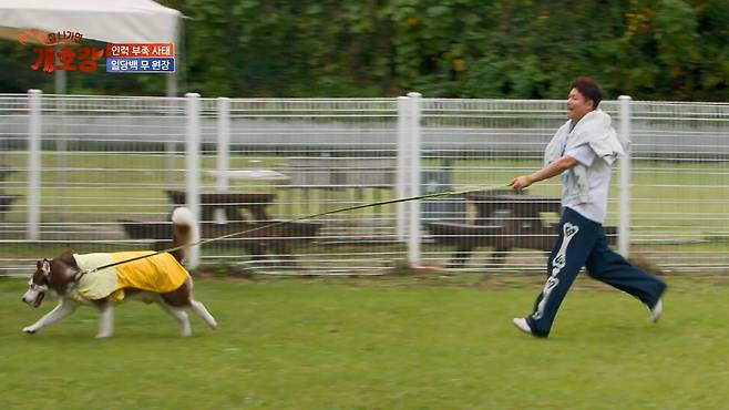 허스키 레오는 운동장에 입장하자 계속해서 뜀박질했고, 처음의 열정과는 다르게 점점 지쳐가던 전현무는 "안돼"라며 레오를 붙잡은 목줄에 끌려갔다. 그렇게 30분을 뛴 전현무는 강제로 몸무게까지 공개해야 했다.