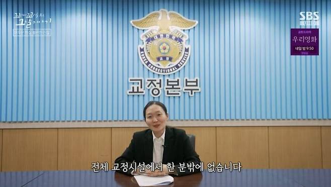 "의료과 소속으로 진료 업무를 담당하는 정신과 의사는, 주 15시간 시간선택제 의무관 한 분뿐이십니다. 우리나라 전체에서요. 전체 교정시설에서 한 분밖에 없습니다."