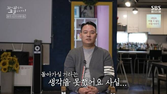 "제가 아닌 이 경찰관분이 오셔서 총을 맞았을 때. 돌아가실 거라는 생각은 못했어요 사실... 이게 운이 없었으면 제가 맞을 수도 있었겠죠. 혼란스러웠어요 그때. 잠을 못 잤어요. 한 이틀 동안. 마지막 대화를 했으니까. 그분이랑 저랑.."
