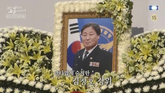 그 경찰관의 이름은 김창호 경위, 나이는 54세였어. 경찰로 27년간 성실하게 근무해 온 그는 24번이나 표창을 받았던 모범경찰이자 한 가족을 책임지는 가장이었어. 범인은 방탄조끼를 입고 있었지만 김 경위는 어둠 속에서도 눈에 잘 띄는 야광조끼를 입고 있었어. 왜? 경찰이니까. 도움이 필요한 사람들의 눈에 잘 띄어야 하니까. 그 결과, 범인은 두 발을 맞고도 괜찮았지만 한 발을 맞은 경찰은 생명을 잃고 말았어.