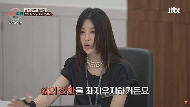 지난 12일 방송된 JTBC '이혼숙려캠프'에서는 '울컥 부부'의 사연이 공개됐다. 이 부부는 자녀 앞에서도 쉬지 않고 싸움을 이어가 패널들의 따가운 시선을 받았다.