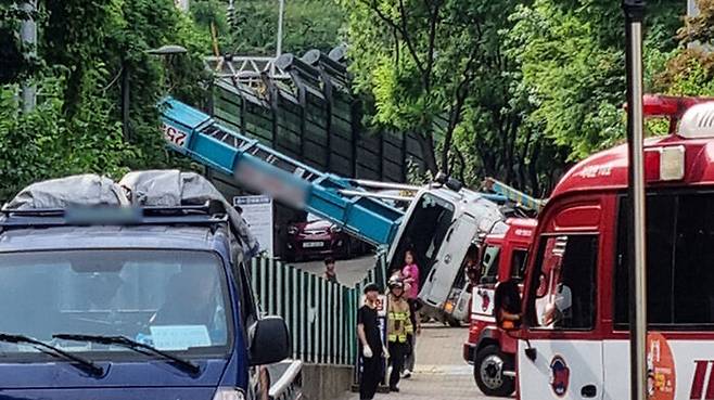 오늘(13일) 오전 8시 20분쯤 서울 서대문구 연희동의 한 아파트에서 이삿짐 사다리차가 넘어지는 사고가 발생한 가운데 운전자의 혈중알코올농도 수치가 '면허 정지' 수준으로 파악됐습니다.