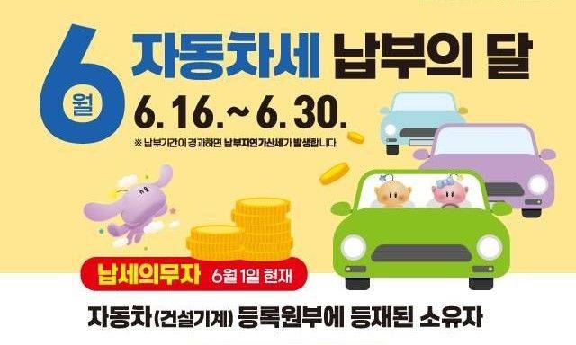 자동차세는 매년 6월과 12월 두차례 부과된다. 1기분은 이달 1일 기준 자동차 소유자가 대상이다.