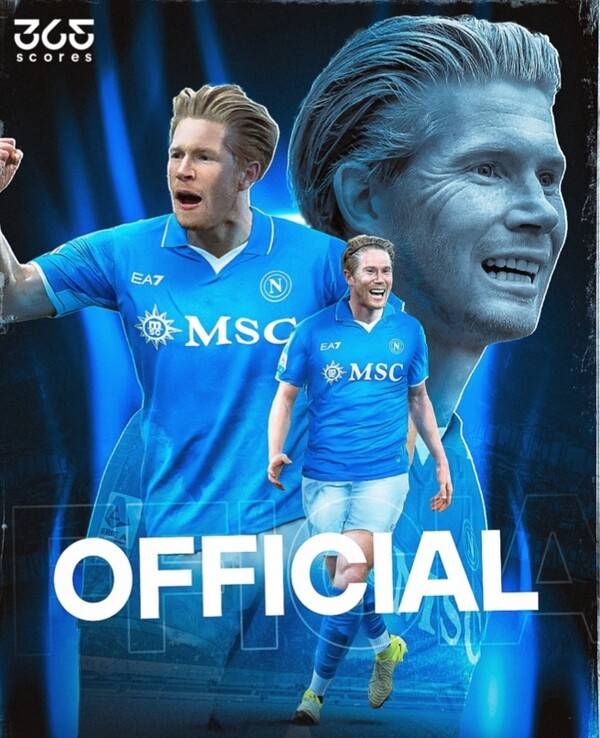 나폴리는 13일(한국시간) 구단 사회관계망서비스(SNS)를 통해 "킹 케빈이 왔다"라는 문구와 함께 더 브라위너 영입 소식을 공식 발표했다.