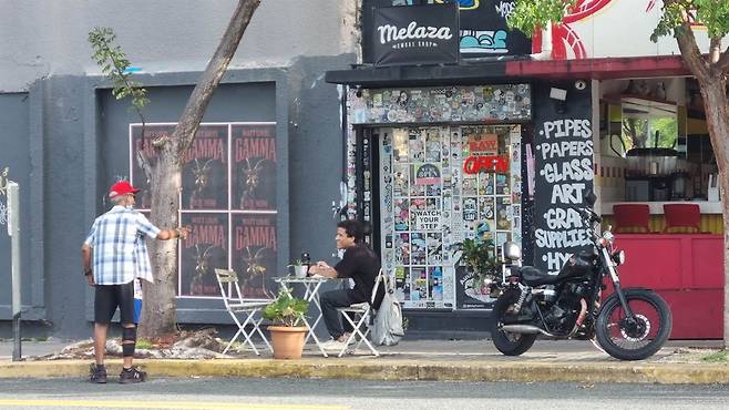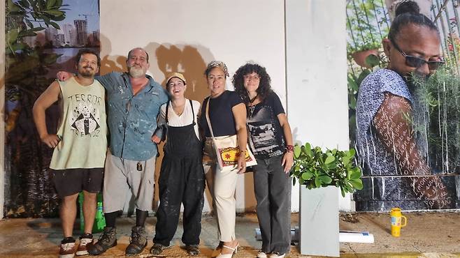 마야구에즈에서 돌아오는 날은 햇살이 유난히 뜨거운 일요일이었다. 니나 작가의 벽화작업이 계속되고 있었다. 협업 작가인 아비(Abey Charrón) 씨가 쿨러백에서 맥주를 꺼내 내밀었다.