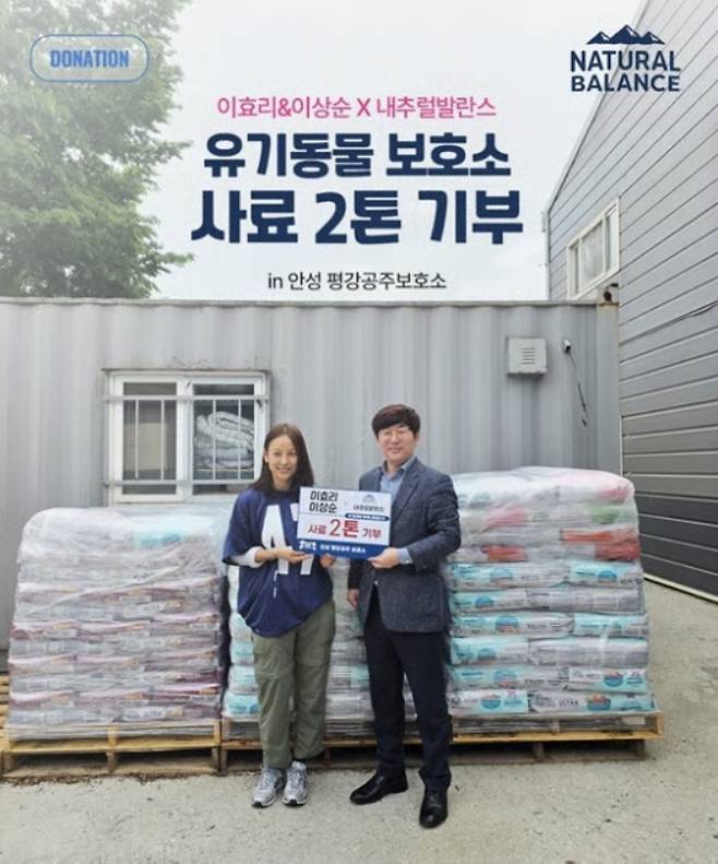 이어 "390여마리의 유기동물들이 생활하고 있는 안성평강공주보호소에서 사료가 떨어졌다는 소식을 듣고 평소 유기동물을 위해 봉사를 꾸준히 실천하고 있는 이효리님과 이상순님께서 내추럴발란스 사료를 직접 구매하여 기부했했다. 당사 또한 따뜻한 마음에 함께 기부하게 됐다. 내추럴발란스는 곧 이효리&이상순님과 함께 어렵고 힘든 유기동물보호소들을 위해 사료 기부를 추가로 진행할 예정"이라고 전했다.