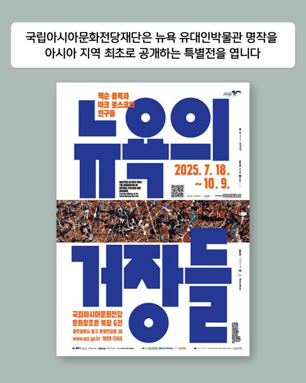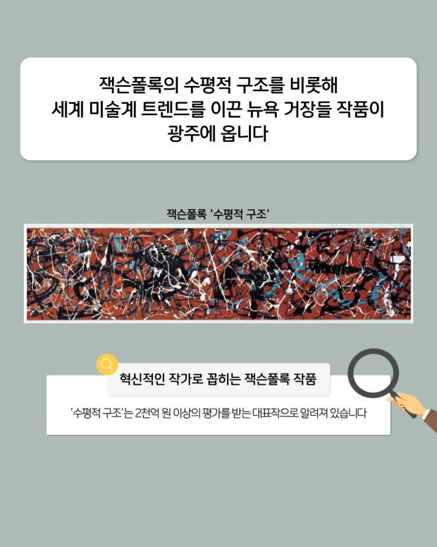 잭슨폴록의 2천억원 이상의 평가를 받는 대표작 ‘수평적 구조’를 비롯해 세계 미술계 트렌드를 이끈 뉴욕 거장들 작품이 광주에 옵니다.