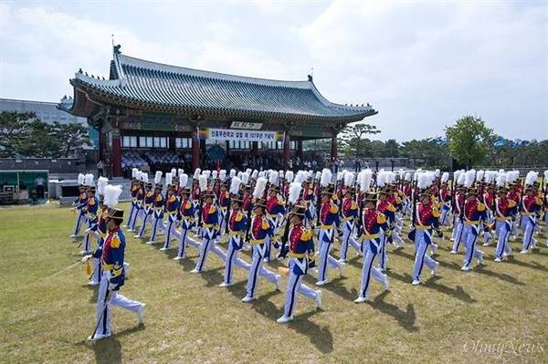| ▲ 2018년 육사에서 열린 신흥무관학교 설립 107주년 기념식 2018년 6월 8일 서울 노원구 육군사관학교 연병장에서 열린 독립군과 광복군의 전신인 신흥무관학교의 107주년 기념식에서 생도들이 분열을 하고 있다. |