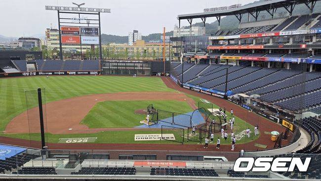 13일 오후 3시, 대전 한화생명볼파크에는 비가 조금씩 내리고 있다. 그라운드에는 방수포를 덮지 않고, 한화 선수들은 비를 맞으며 배팅 훈련을 실시하고 있다. 외야에서는 투수들이 워밍업을 하고 캐치볼을 실시했다.