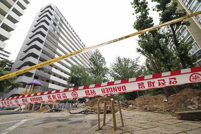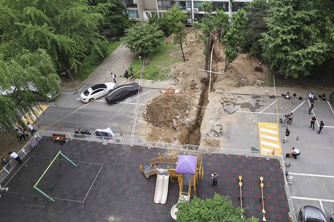 13일 오후 1시 2분께 서울 강남구 대치동 은마아파트 하수관 교체 공사 현장에서 매몰 사고가 발생해 작업자 2명이 병원에 이송됐다. 소방 당국에 따르면 이들 중 60대 남성 작업자는 심정지 상태로 병원에 옮겨져 치료받고 있다. 사진은 사고 현장 모습.