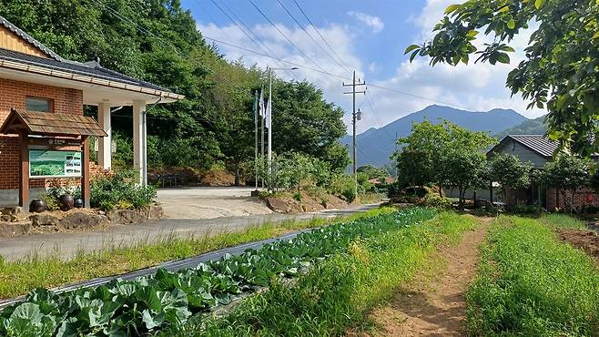 | ▲ 마을회관 풍경. 여느 마을과 달리 숲과 가까이 자리하고 있다. |