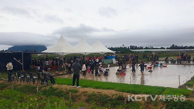 아이들에게는 모내기 논이 놀이터가 됐습니다.