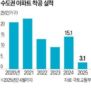 2015~2021년 7년 동안 수도권 아파트 착공은 연평균 21만5036가구였다. 이후 2022년 13만9967가구, 2023년 10만2476가구, 지난해 15만1473가구로 눈에 띄게 줄었다. 올해 4월까지 착공 실적은 3만1126가구다. 이 추세가 이어지면 올해 수도권 착공 물량도 약 12만 가구에 그칠 것으로 예상된다. 이경자 삼성증권 수석연구위원은 “빌라와 오피스텔이 대안이 못 되는 가운데 3기 신도시도 공정률이 낮아 공급은 2028년까지 계속 줄어들 전망”이라며 “올해 하반기에는 공급 부족으로 매매와 전세 가격 상승이 이어질 것”이라고 말했다.