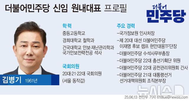 [서울=뉴시스] 더불어민주당은 3일 국회에서 의원총회를 열고 김병기 의원을 신임 원내대표로 선출했다. (그래픽=전진우 기자)
