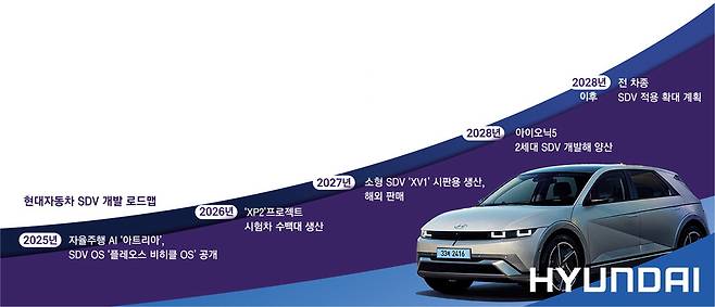 이를 바탕으로 2028년 출시가 예정된 아이오닉5 2세대 모델에 첫 SDV를 적용한다는 계획이다. 현대차는 당초 내년 개발을 목표로 XP2 프로젝트 시험차를 수백 대 제작해 여기서 각종 데이터를 쌓을 예정이었다. 현대차가 이 프로젝트 차량 제작을 줄이고 XV1의 출시 일정을 새로 넣은 것은 실제 시판용 차량을 운영하며 데이터를 쌓는 것이 유리하다고 판단한 것으로 보인다.
