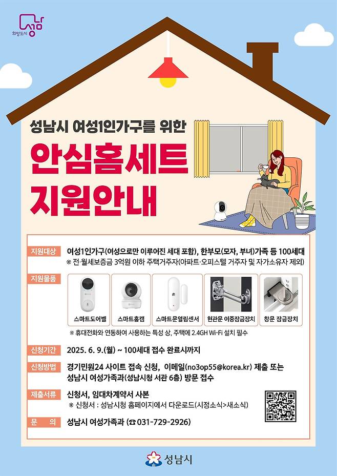 성남시, 여성 1인 가구 100가구에 안심 홈세트 지원