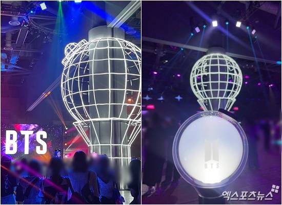 명성에 걸맞게 스케일도 어마어마했다. 전시장에 들어서자마자 입구에서부터, 압도적인 대형 아미밤과 은은한 조명이 팬들을 감싼다. 특히 정오부터 정각마다 약 5분간 '라이팅 쇼'를 통해 개인이 소지한 아미밤과 대형 아미밤 조형물(ARMY BOMB PHOTO SPOT)이 어우러지는데, 이때 수줍게 아미밤을 들어올려 인증샷을 남기는 것이 포인트다.