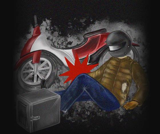 어둡고 좁은 골목을 내달리던 오토바이는 코너를 돌던 찰나 미끄러지며 뱅그르르 돌았다.