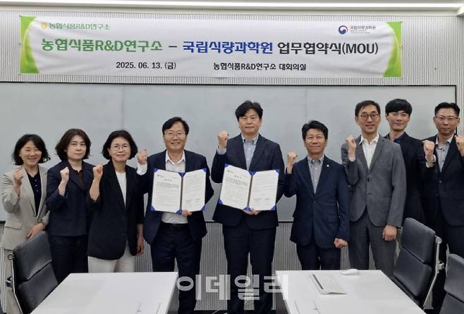 [이데일리 김태형 기자] 농협 경제지주 식품R&D연구소는 13일 국립식량과학원과 국산 농산물을 활용한 기능성 소재 개발 업무협약을 체결했다.