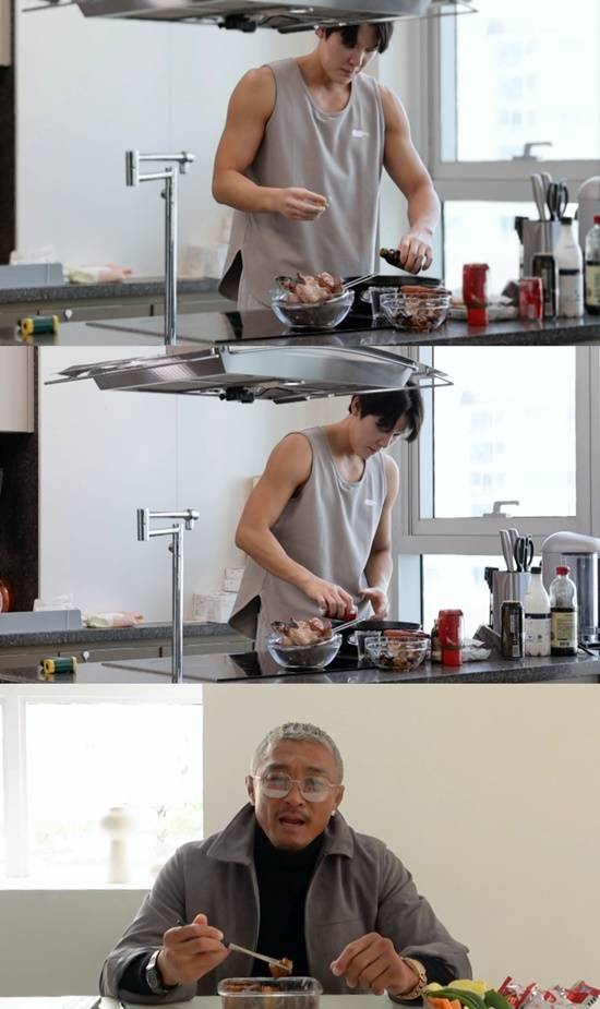 박태환은 "추성훈 형이 워낙 고기를 좋아해서 제가 시식을 부탁했다"라고 말했다. 추성훈은 대뜸 "태환이가 처음부터 직접 만든 건가?"라고 의심의 눈초리를 보내더니 맛보기 전부터 아쉬운 점을 지적해 박태환을 불안하게 했다.