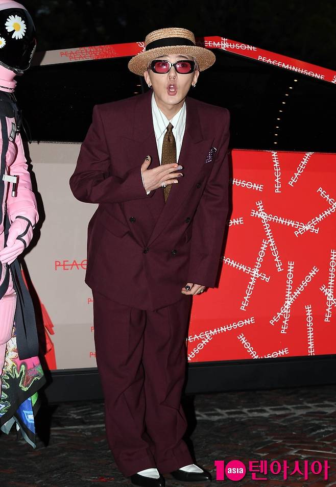 [텐아시아=조준원 기자]가수 지드래곤이 13일 서울 용산구 한 호텔에서 열린 피스마이너스원 하이볼의 론칭파티 <THE SIGNAL> 기념 행사에 참석해 포즈를 취하고 있다.