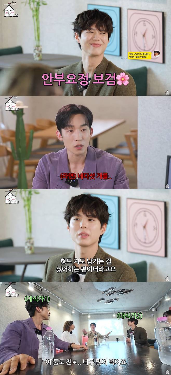 이어 태원석은 "아무리 덩치가 아무리 많이 먹어도 박보검과 이상이한테는 안 되겠더라"고 말했다. 이상이는 억울해하면서도 "눈앞에 음식이 있으면 계속 먹는다. 라면을 누가 우연히 5봉지를 끓여놓으면 다 먹어야겠다는 생각이 든다"고 솔직하게 얘기했다.