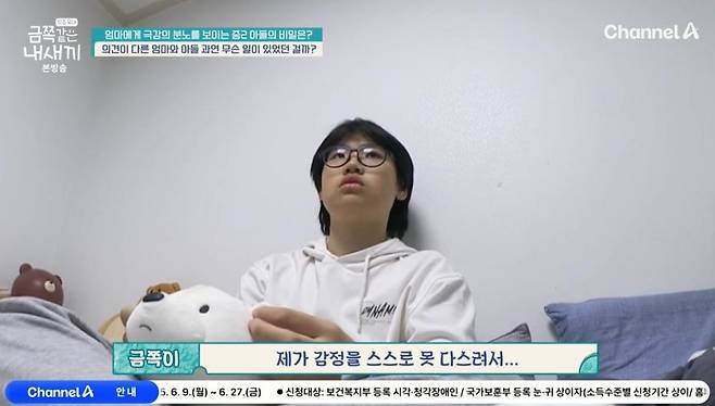 금쪽이는 "엄마와 말이 안 통한다"라며 "내가 감정이 컨트롤이 안된다. 화날 때는 폭력적이다"라며 강한 변화 의지와 함께 출연을 결정했다.