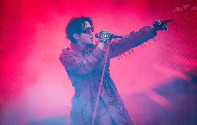 공연 시작 전부터 하늘에서 가는 빗줄기가 떨어졌지만 머리부터 발끝까지 붉은색으로 꾸민 제이홉의 첫 등장부터 관객석은 뜨거운 열기로 화답하며 호흡했다.