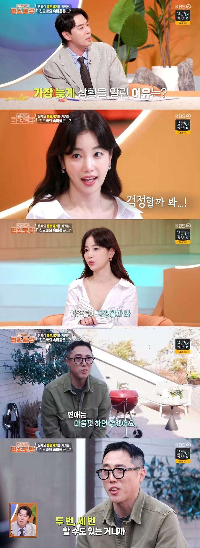 또 기은세의 오빠는 동생이 연애했으면 좋겠냐는 질문에 "연애는 마음껏 했으면 좋겠다. 결혼은 자기가 하고 싶으면 하는 거니까. 두 번 세 번 할 수도 있는 거니까 요즘은"이라고 말했다.