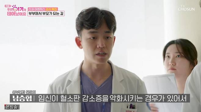 남승협은 "저희가 고민이 많았다. 임신이 혈소판 감소증을 악화시킬 수 있어서 산모님이 위험해질 수 있었다. 저희는 아기도 중요하지만 산모가 1순위다. 교수님도 고민 많이 하고 상의를 많이 했다. 다행히 혈소판 수치가 올라오면서 묶는 수술을 고려하게 됐다"라고 설명했다.
