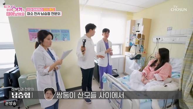 남승협은 "이 케이스는 단일융모막 단일 양막으로 아파트로 치면 한 방에 아이가 들어있는 거다"라고 설명했다. 이를 스튜디오에서 지켜보던 김지연 산부의과 전문의는 "저도 한번도 본 적이 없다. 책으로만 보고 외웠는데 실제로 본 건 처음"이라며 놀라워 했다.