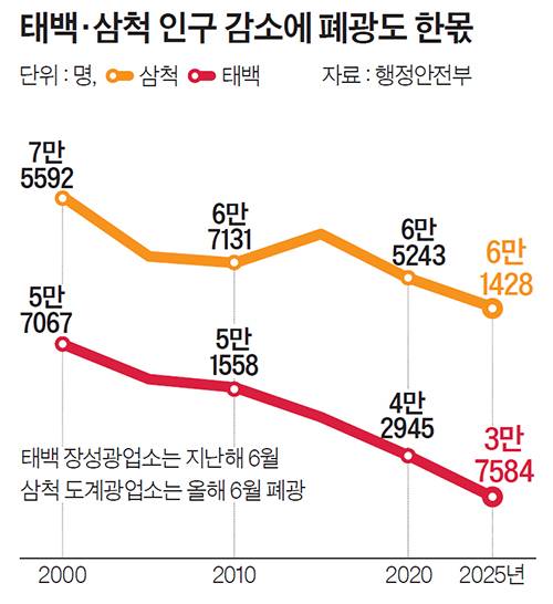 노인이 많다는데, 도계의 평균 연령은 50.4세에 ‘불과’하다. 이곳에 사는 20대 초반 대학생들이 평균 연령을 끌어내리기 때문이다. 지난해 문 닫은 장성광업소 철암역두 선탄장이 있는 태백시 철암동은 60.9세다. 서울 자치구 중 평균 연령이 가장 높은 강북구는 48.9세다.