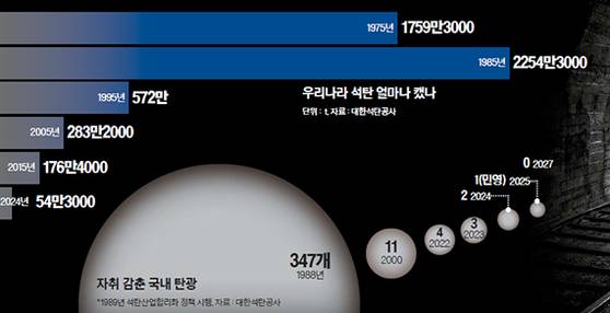이희탁(71) 중앙진폐재활협회장의 말이다. ‘블랙 다이아몬드’ 혹은 ‘검은 진주’로 불리는 석탄은 산업혁명의 원동력이었다. 에너지 수입 의존율이 97%나 되는 대한민국 산업화의 주력이자 ‘한강의 기적’을 만든 일등공신. 1973년과 1977년 두 차례의 석유파동과 1998년 외환위기 등에서 나라를 구한 영웅이기도 했다. 합리화 이전 1988년 전국 석탄 생산량은 2430만t으로 최고점을 찍었다. 지난해는 그 2.2%인 54만여t에 불과하다.