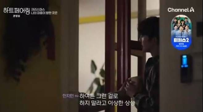 13일 채널A ‘하트페어링’에선 크리스마스이브에 함께 모인 입주자들의 모습이 그려졌다. 제연은 지민에 대해 깊은 생각에 빠진 모습을 보였다.