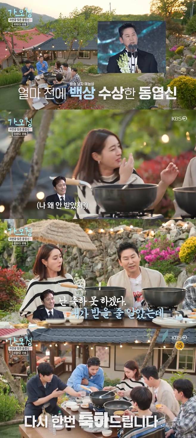 신동엽은 "끝나고 병헌이네 집에서 맥주 한 잔 하는데 병헌이가 농담으로 '난 축하 못 하겠다. 내가 받을 줄 알았는데'(라고 하더라)"라고 전해 웃음을 안겼다.