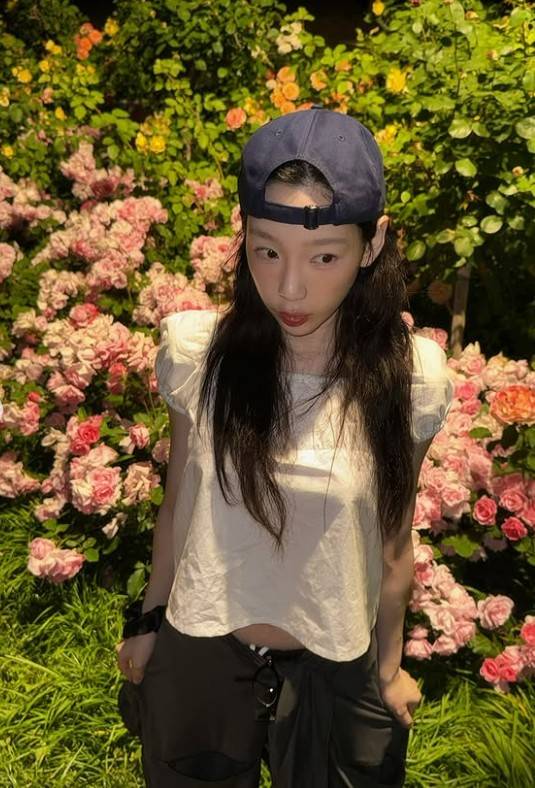 이날 태연은 베이식한 화이트 크롭 티셔츠에 블랙 카고 조거팬츠를 매치해 활동성과 스타일을 동시에 잡았다. 허리에는 얇은 점퍼를 묶어 연출해 레이어링의 재미를 더했다.