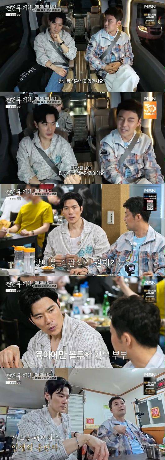 이날 전현무와 곽튜브는 김강우와 함께 대구 별미를 맛보며 다양한 이야기를 나눴다. 별명이 방배동 김관식라는 김강우는 중학교 2학년과 초등학교 6학년 아들 둘이 있다고 밝혔다. 식비가 많이 들겠다는 전현무의 말에 김강우는 “엄청 많이 든다. 고기도 거의 근으로 시킨다”라고 혀를 내둘렀다.