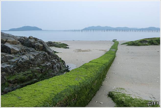 초록빛 해초가 콘크리트를 물들였네.