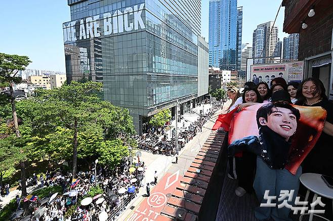 BTS 'WE ARE BACK'…하이브 앞에 모인 전세계 아미들